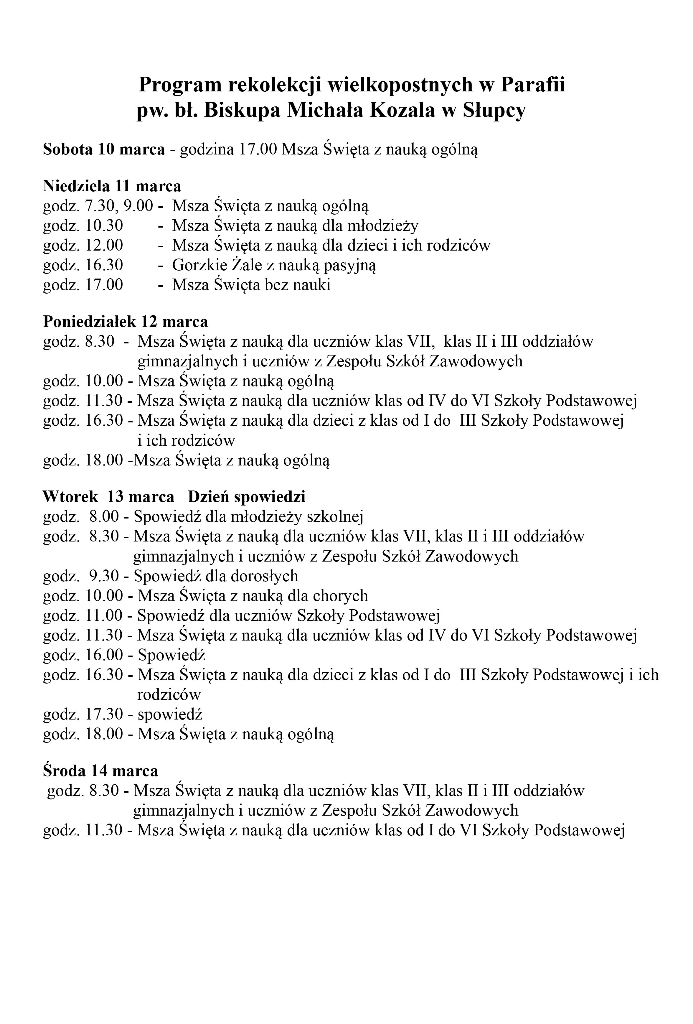 Zdjęcia z pierwszego dnia rekolekcji możecie Państwo zobaczyć na stronie parafii.