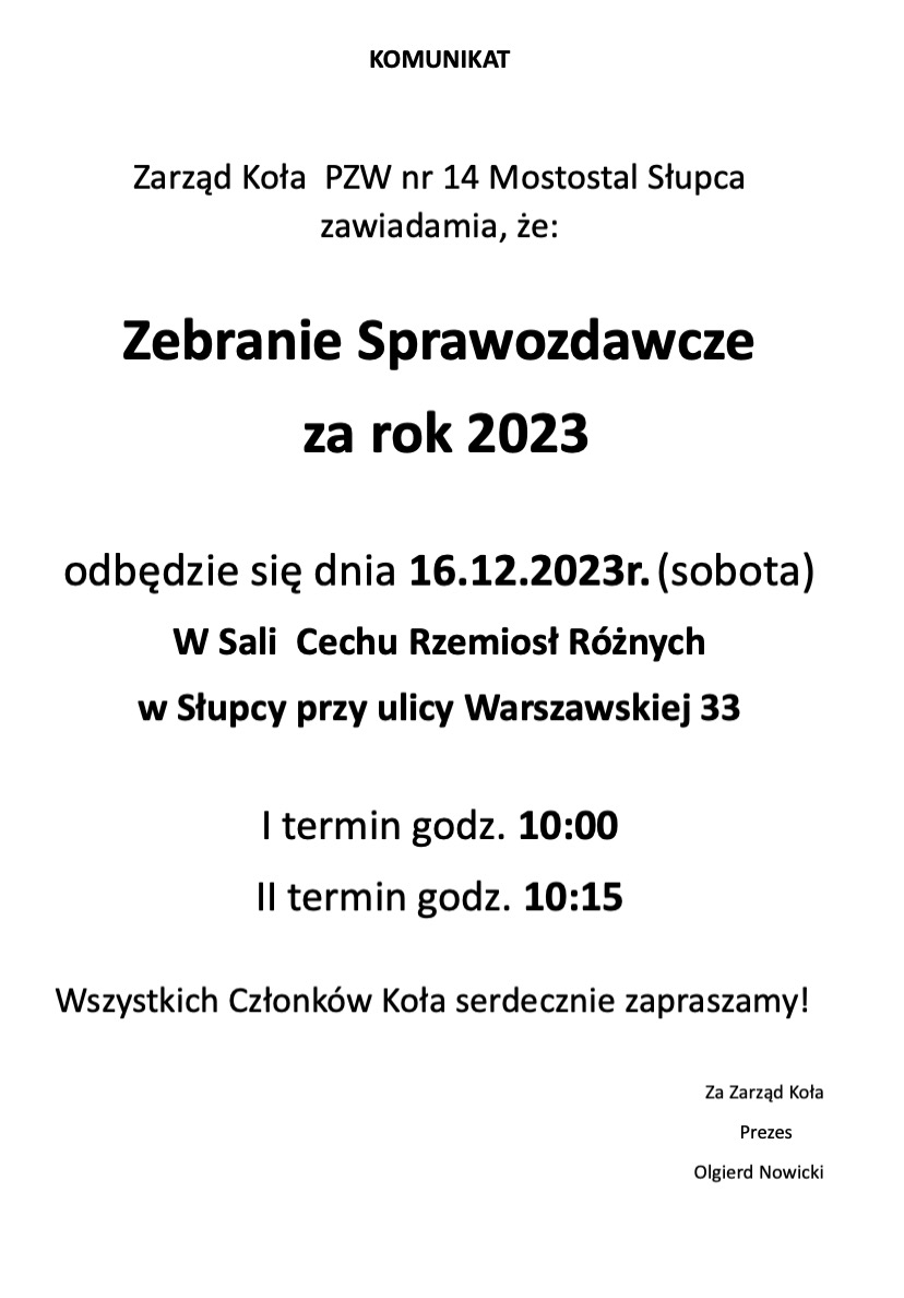Walne zebranie koła Mostostal. Prezes zaprasza