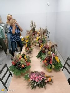 Warsztaty florystyczne „JESIENNA KOMPOZYCJA” możemy zaliczyć do bardzo udanych, nie tylko ze względu na wykonane kompozycje ale również przesympatyczną atmosferę, która towarzyszyła w czasie wykonywania „Jesiennych bukietów”.