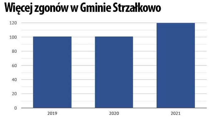 – W 2021 r. zmarło 120 mieszkańców gminy Strzałkowo – podaje Jakub Malinowski, inspektor ds. ewidencji ludności oraz zastępca kierownika USC w Strzałkowie. Natomiast w rozbiciu na przedziały wiekowe: w wieku 0-30 lat zmarły 2 osoby, 31-50 lat – 5 osób, 51-70 lat – 35 osób, od 71 i więcej – 78 osób. Biorąc pod uwagę dane z lat ubiegłych, kiedy zarówno w 2019 r., jak i 2020 r. licznik zgonów wskazywał liczbę 101, w gminie Strzałkowo przybyło 19 zgonów.