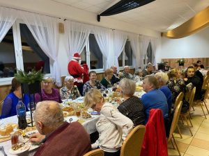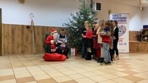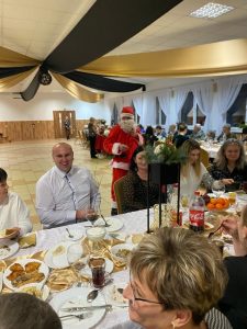 Podczas spotkania każdy z gości miał okazję złożyć sobie na wzajem życzenia bożonarodzeniowe, połamać się opłatkiem, zaśpiewać kolędę. Odwiedził nas rownież długo wyczekiwany gość Święty Mikołaj obdarowując najmłodszych prezentami, a tych trochę starszych, ktorzy byli nie zawsze grzeczni w ciągu całego roku drobnymi rózgami. Gościliśmy również włodaża naszej gminy Pan wójt Artur Miętkiewicza, który również złożył wszystkim zebranym życzenia oraz podziękował za zaproszenie.