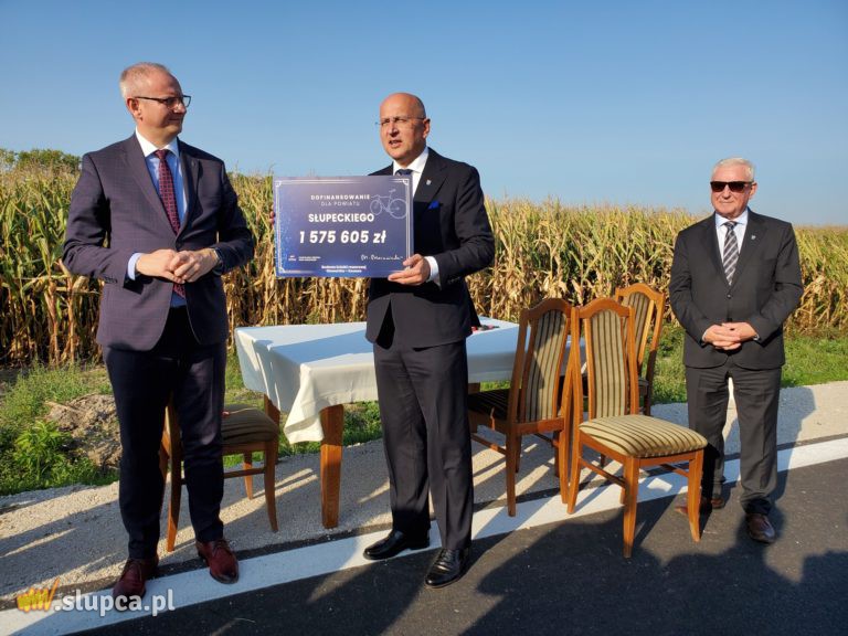 W słupeckim szpitalu miało miejsce podpisanie umowy i przekazanie miliona zł z rezerwy premiera na doposażenie bloku operacyjnego. Wkład powiatu będzie wynosił 250 tys. zł. Na koniec wizyty w powiecie starosta odwiedził gminę Ostrowite. Wziął udział w otwarciu drogi w Sierniczu Małym, która została wyremontowana w ramach rządowego Funduszu Dróg Samorządowych. Również w Sierniczu wojewoda ze starostą Jackiem Bartkowiakiem i wicestarostą Czesławem Dykszakiem podpisali umowę dofinansowania budowy ścieżki rowerowej z Giewartowa do Kosewa. Całkowita wartość zadania wynosi prawie 2 mln zł. Dofinansowanie: 1 mln 575 tys. zł, , wkład własny: 424 tys. zł (Powiat Słupecki 212 tys. zł, Gmina Ostrowite: 212 150 zł).