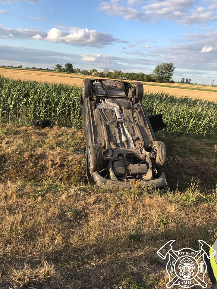 Dzisiaj po godz. 19 strażacy z OSP Kamień zostali zadysponowani do wypadku samochodowego na drodze krajowej nr 92 w miejscowości Rokosz.