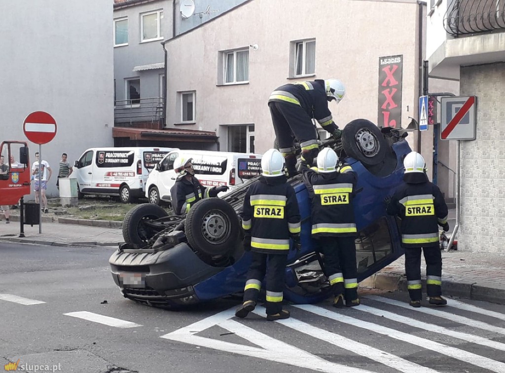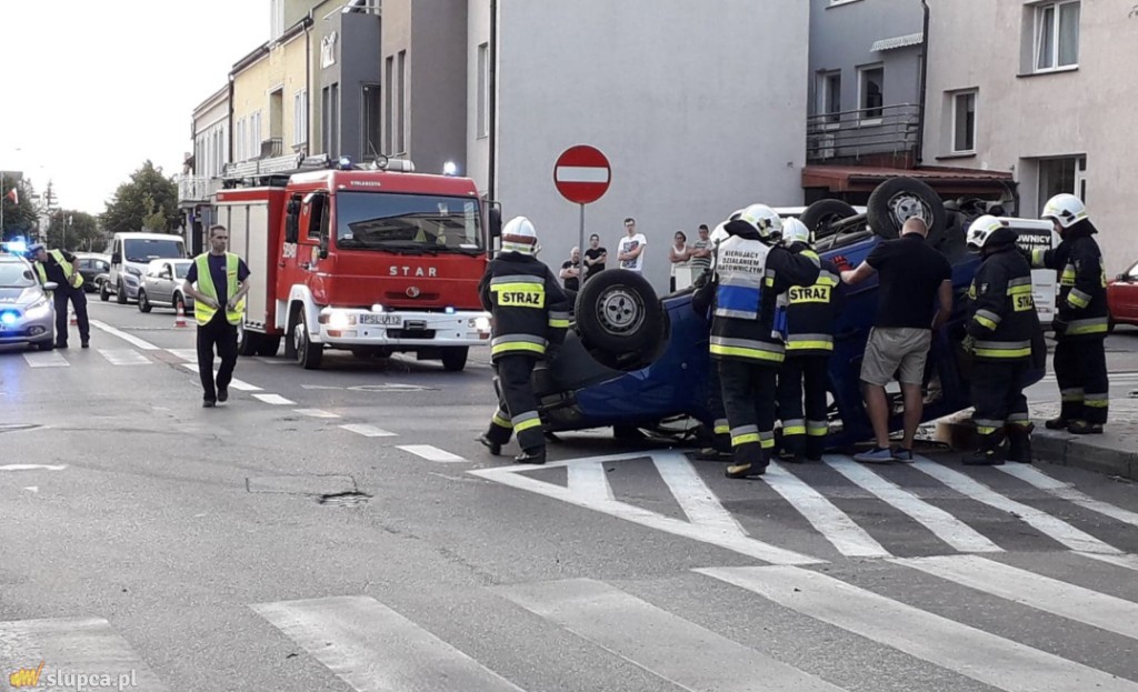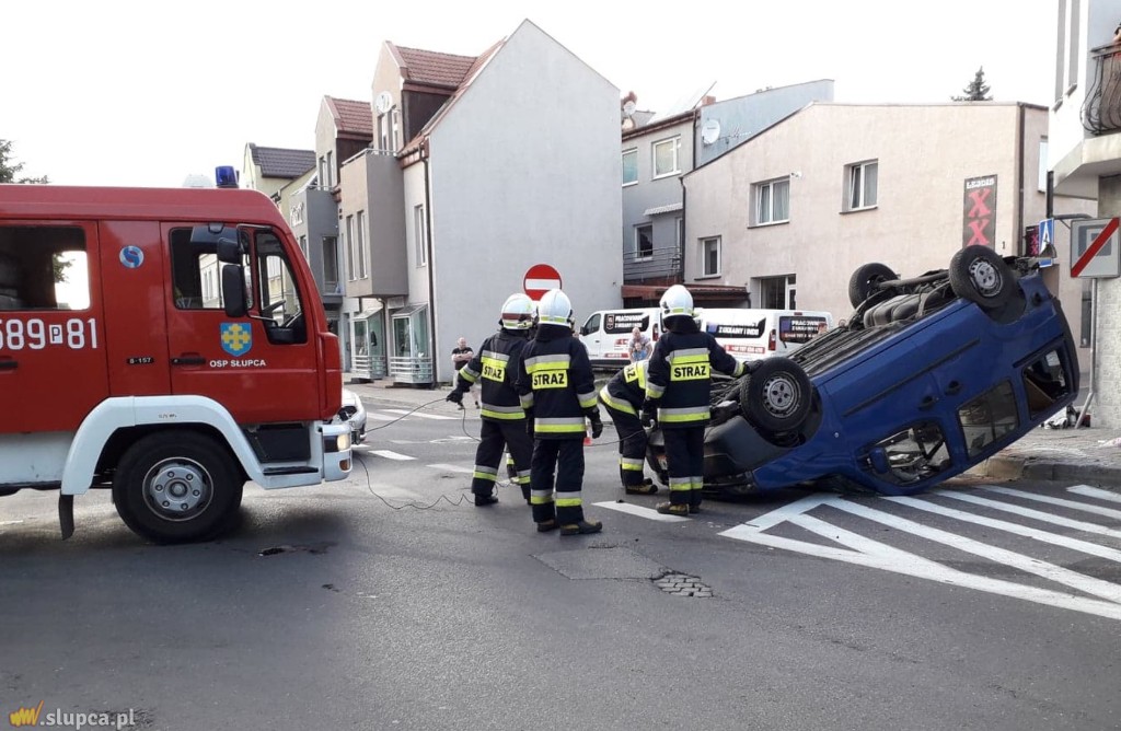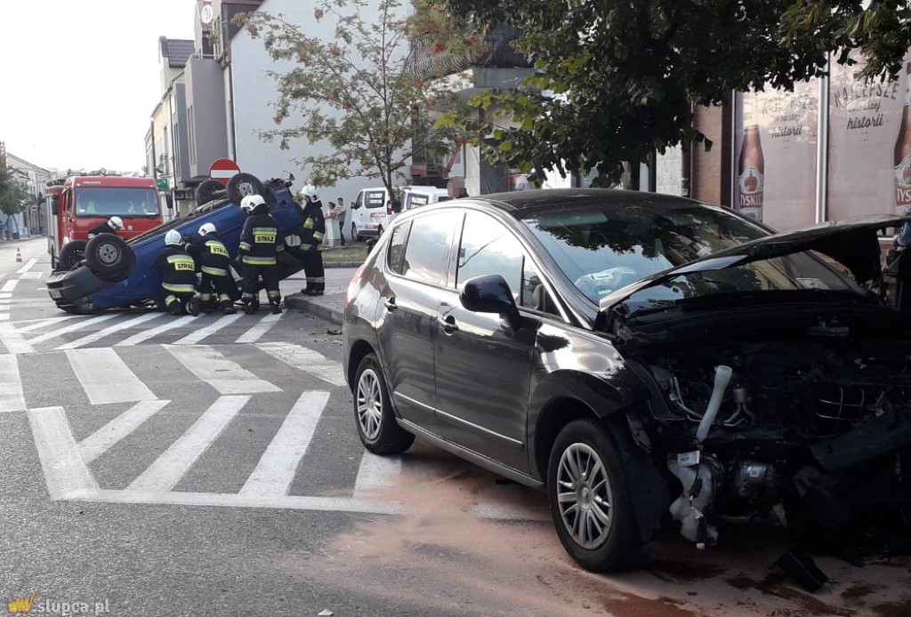 Do groźnie wyglądającego wypadku doszło dziś ok. godz. 19.00 przy słupeckim rynku. Jak wynika ze wstępnych ustaleń, kierujący fiatem doblo, wyjeżdżając z placu Wolności w kierunku ul. 21 stycznia nie ustąpił pierwszeństwa przejazdu jadącemu ul. Poznańską kierowcy osobowego peugeota. Po zderzeniu obu pojazdów fiat doblo przejechał przez skrzyżowanie, najechał na wysoki krawężnik, po czym auto przewróciło się na dach. Na szczęście nikt nie ucierpiał.