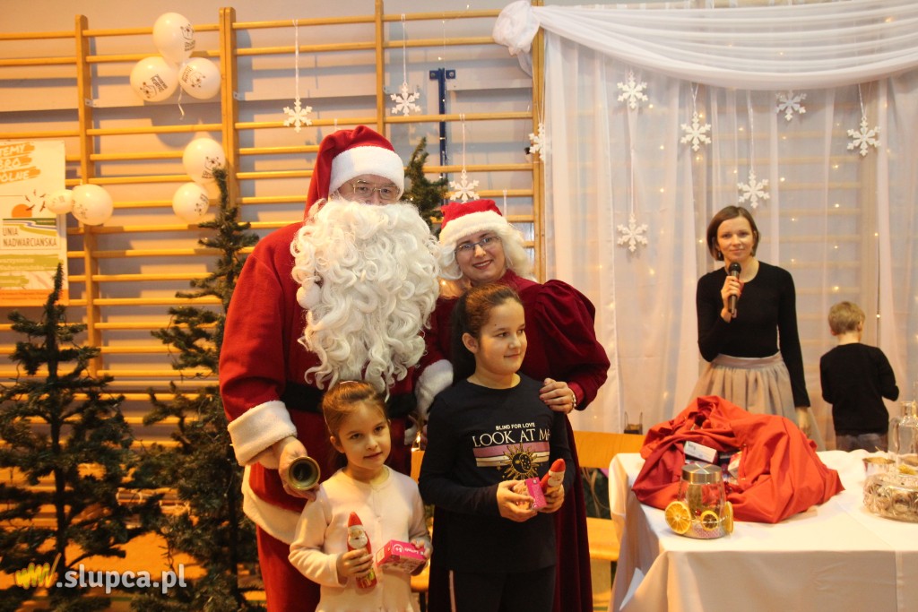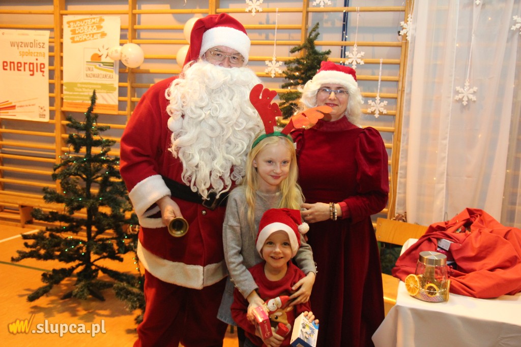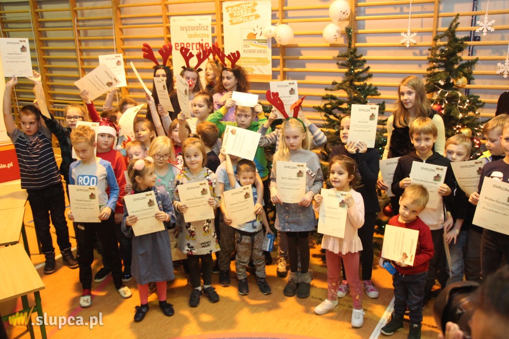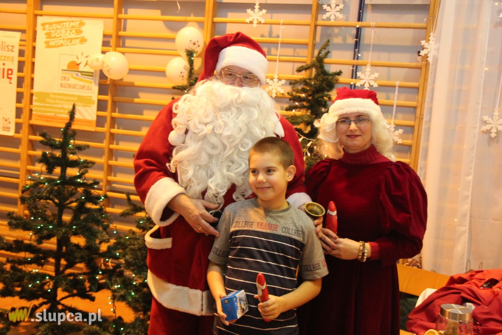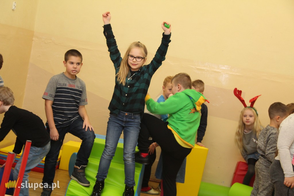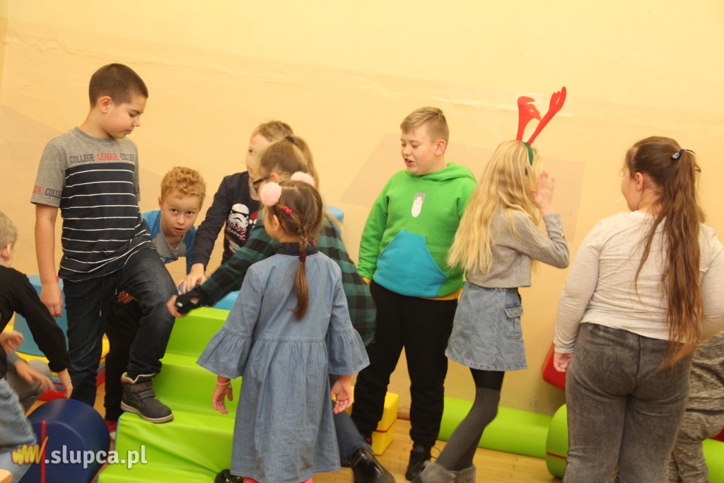 W środowe popołudnie w szkole spotkały się dzieci na co dzień uczęszczające do szkolnej świetlicy. Do wspólnej zabawy zaprosili rodziców i rodzeństwo. Koordynatorem warsztatów była Monika Stranc, natomiast nad przebiegiem prac czuwały mamy dwójki uczniów: Elżbieta Durska oraz Monika Adamczak. Zgodnie z tematem przewodnim, uczestnicy warsztatów wykonywali zimowe stroiki „zamknięte” w szklanych słojach. Efekty ich pracy były olśniewające, a radość i zadowolenie z samodzielnie przygotowanych ozdób na świąteczny stół – bezcenne! Nie zabrakło Mikołaja, który dla wszystkich dzieci miał prezenty. Prezenty czekały na dzieci również pod choinką w świetlicy. To nowiutkie, piankowe klocki rehabilitacyjne, które udało się kupić ze środków zebranych podczas czerwcowego festynu rodzinnego.