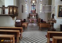 - kaplica boczna – ku czci Najświętszej Maryi Panny; pełni również funkcję kaplicy chrzcielnej (chrzcielnica i paschał);