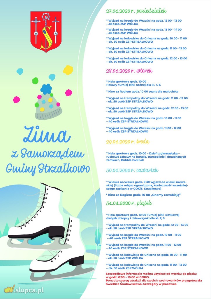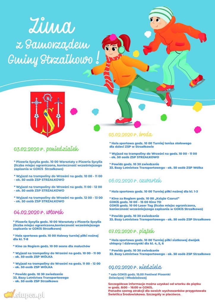 Już za tydzień rozpoczynają się ferie, a wraz z nimi akcja Zima z Samorządem Gminy Strzałkowo. Poniżej publikujemy szczegółowy harmonogram akcji.