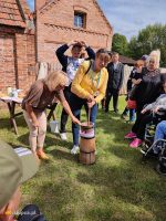 Niezwykłą lekcję historii połączoną z dobrą zabawą przeżyli podopieczni Stowarzyszenia Przyjaciół Osób Niepełnosprawnych Gminy Strzałkowo, którzy wybrali się na wycieczkę do Kujawsko – Dobrzyńskiego Parku Etnograficznego w Kłóbce. Na terenie skansenu uczestnicy wyjazdu zwiedzili m.in. remizę strażacką, karczmę i szkołę oraz zespół dworsko – parkowy. Największą atrakcją były warsztaty podczas, których każdy mógł sprawdzić się w ubijaniu masła i tłoczeniu oleju. Zabawa była znakomita. W wycieczce udział wzięło ok. 30 osób.