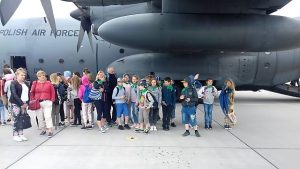 Punktualnie w samo południe odbyła się uroczysta zbiórka oraz pokaz musztry paradnej w wykonaniu Orkiestry Reprezentacyjnej Sił Powietrznych z Poznania i defilada pododdziałów. Zaraz potem zgromadzeni mogli podziwiać przelatujące ponad głowami statki powietrzne. Wszyscy byli pod dużym wrażeniem. Uczniowie uznali, iż wizyta na lotnisku to świetny prezent z okazji Dnia Dziecka.