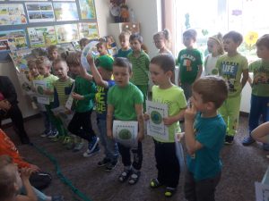 Starszacy zaprezentowali się w wierszach ekologicznych, natomiast maluchy przedstawiły wszystkim zebranym Kodeks Ekologiczny. Dzieci uczestniczyły także w zabawie pt. „Kwiatki rosną” zaśpiewały również piosenki o ekologii. Zaproszonym gościom występ bardzo się podobał o czym świadczyły gromkie brawa.
