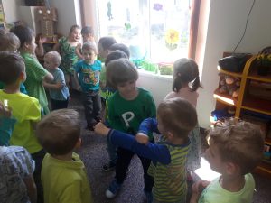 Tego dnia wszystkie dzieci przyszły do przedszkola ubrane na zielono na znak tego, że bardzo im zależy, aby nasza planeta była czysta i zielona.