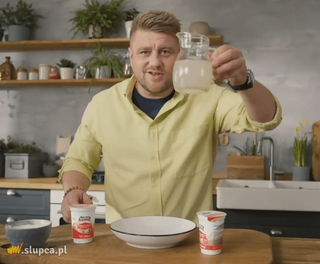 – Pulpety już gotowe, wywar też już gotowy, no ale trzeba czymś żur zabielić. Oczywiście najlepsza będzie polska, słodka śmietana. Ale trzeba czymś jeszcze żur zakwasić. No i tutaj taki mój patencik. Nie będę używał zakwasu na żur, tylko soku z kiszonych ogórków, które wlewam do miski i dodaję do niego sporą ilość śmietany. Trzeba też czymś zagęścić zupę. W związku z tym, teraz do tego dosypuję mąki. Bardzo ważne, żeby tą mąkę konkretnie rozprowadzić. Nie może być grud, bo inaczej się zrobią po prostu śmietankowo-ogórkowe kluski. Moją miksturę muszę przelać do garnka. W tym momencie pewnie większość z was się denerwuje, że to wszystko zaraz się zwarzy i zupa będzie niekorzystnie wyglądała. Nie, dodając dobrą, polską słodką śmietanę, nie ma możliwości, żeby się zwarzyła – mówił popularny kucharz w trakcie odcinka, który powstał we współpracy z SMU Strzałkowo.