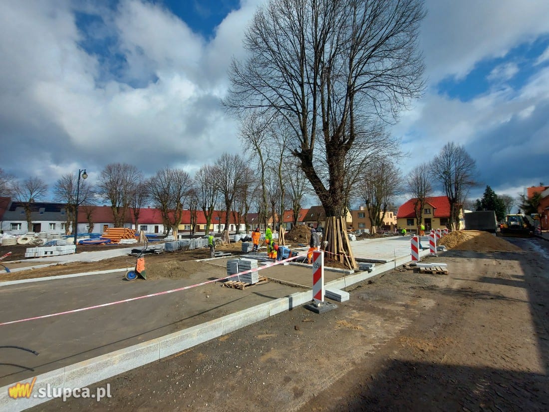 Następnie realizowana będzie nawierzchnia chodnika na pierzei zachodniej od strony parku, a również wykończenia w centralnej części. Do czasu zakończenia nawierzchni jezdni na pierzei południowej, wykonawca nie może ingerować w jezdnię na pierzei zachodniej.