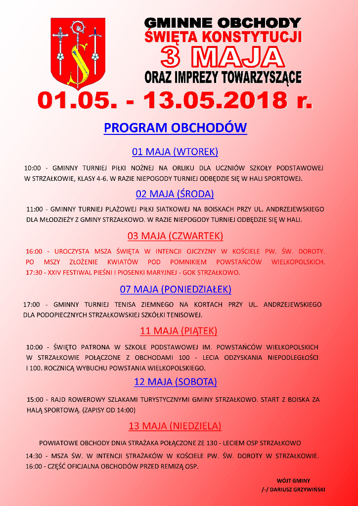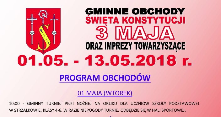 Bogate w wydarzenia będą obchody kolejnej rocznicy Konstytucji 3 Maja w gminie Strzałkowo. Poniżej publikujemy program obchodów.