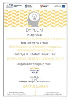 Ogródek Permakultury dla przedszkola w Zagórowie zyskał uznanie jurorów jako najciekawsze działanie w Subregionie konińskim i w kategorii Zdrowie i ekologia w konkursie – Działanie Godne Uwagi organizowany przez Stowarzyszenie Centrum Pomocy i Rozwoju Inicjatyw Obywatelskich PISOP.