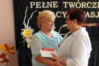 – Pani dyrektor stanowi pozytywny wzór osoby aktywnie podchodzącej do spraw własnego rozwoju, systematycznie podnoszącej swoje kwalifikacje zawodowe. Ukończyła studia w Wyższej Szkole Pedagogicznej w Zielonej Górze, uzyskała I stopień kwalifikacji zawodowej w zakresie wychowania przedszkolnego, ukończyła Studia Podyplomowe w zakresie organizacji i zarządzania oświatą oraz wiele kursów i szkoleń – mówiła wicedyrektor Buśkiewicz.
