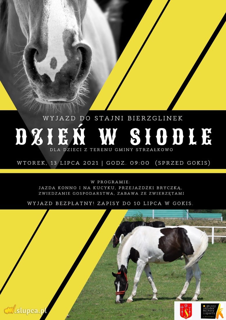 Gminny Ośrodek Kultury i Sportu w Strzałkowie, jak co roku, organizuje wyjazd do Stajni Bierzglinek dla dzieci z terenu gminy Strzałkowo. Szczegóły na plakacie poniżej.