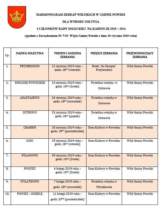 Znamy terminy zebrań wiejskich w gminie Powidz, podczas których mieszkańcy wybiorą sołtysów i członków rad sołeckich na kolejną kadencję 2019-2024. W przypadku sołectw, których zebrania odbywać się będą poza danymi miejscowościami, zorganizowany zostanie transport, o czym poinformowani zostaną odrębnie mieszkańcy sołectw. Harmonogram zebrań poniżej.