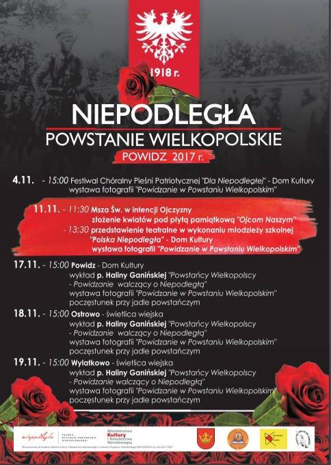 Biblioteka Publiczna Gminy Powidz wraz z Urzędem Gminy Powidz, Domem Kultury w Powidzu, Towarzystwem Przyjaciół Powidza oraz Zespołem Szkolno-Przedszkolnym im. Kompanii Powidzkiej 1918 r. w Powidzu wspólnie zorganizują w tym roku obchody 99. rocznicy odzyskania Niepodległości. Przez kilka dni na terenie gminy będą odbywały się uroczystości upamiętniające tamte wydarzenia. Jak zapewniają organizatorzy, ma to być swoiste preludium przyszłorocznej wyjątkowej 100. rocznicy.