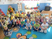 Po spotkaniu i podziękowaniu za przekazane cenne wiadomości i rady dzieci wręczyły piękną laurkę w kształcie pszczółki. Przedszkolaki w ekspresji plastycznej kolorowały słoiczki z miodem oraz pszczółki.