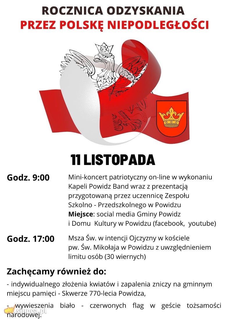 Obchody Narodowego Święta Niepodległości 11 listopada 2020 w gminie Powidz z uwagi na panującą sytuację epidemiczną będą mieć charakter symboliczny.