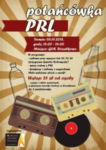 6 października w Gminnym Ośrodku Kultury w Strzałkowie odbędzie się potańcówka w klimacie PRL. W programie imprezy m.in. zabawa przy muzyce lat 60., 70. i 80., menu rodem z PRL oraz konkursy i zabawy z nagrodami. Mile widziane stroje z epoki! Wstęp 25 zł od osoby. Zapisy i odbiór wejściówek w GOK Strzałkowo do 3 października.