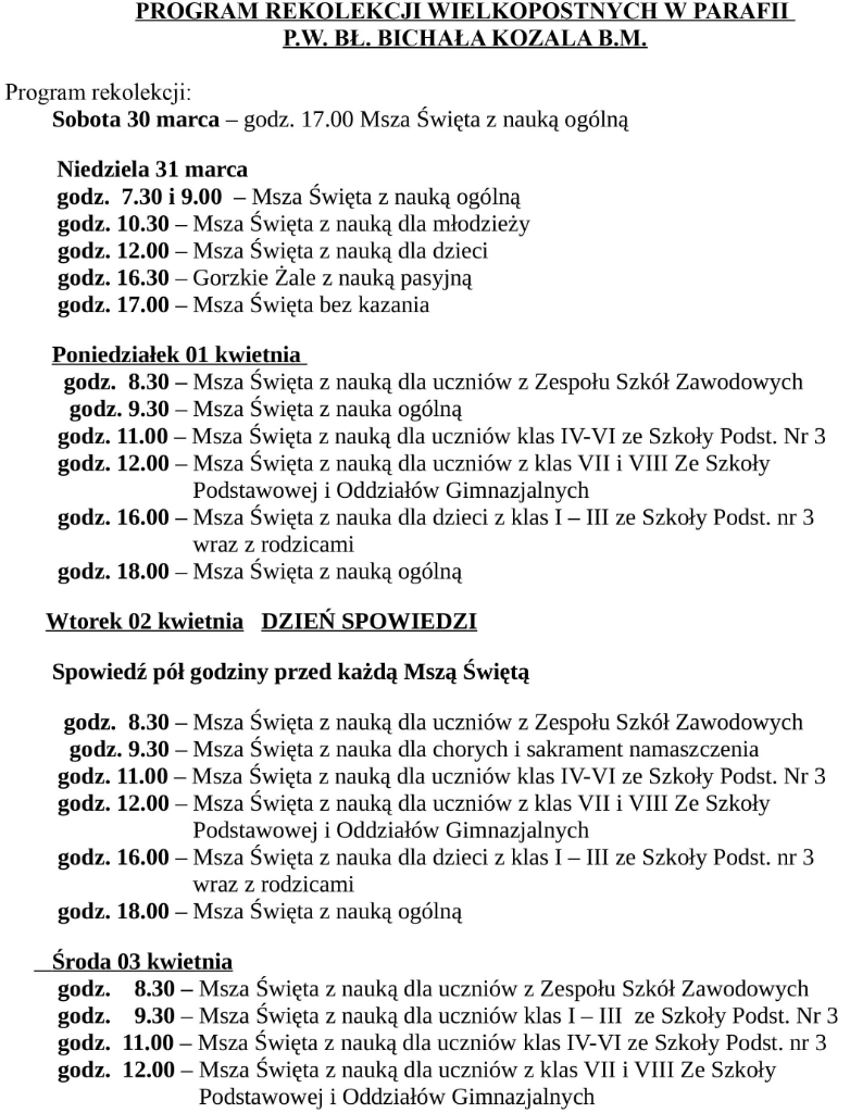 W parafii pw. bł. M. Kozala w Słupcy od wczoraj trwają rekolekcje wielkopostne. Przedstawiamy szczegółowy harmonogram.