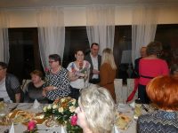 Najserdeczniejsze życzenia wszystkim paniom złożył życzenia Prezes OSP Pokoje Mariusz Mikołajczyk, dziękując za wspaniałą dotychczasową współpracę, życząc wielu sukcesów w życiu zawodowym jak i prywatnym. Do życzeń przyłączył się również sołtys Pokoi Jan Wittig. Po życzeniach, wręczeniu kwiatów wszyscy zasiedli do wspólnej biesiady, któr została przygotowa przez pracowników „kucharzy” z restauracji Dobry Adres. Przepyszne jedzenie, przemiła obsługa, restauracja godna polecenia i odwiedzenia. Dla pań druhowie przygotowali różne atrakcje min.: obieranie ziemniaków na czas i ważenie, ale nie ziemniaków tylko obierków. W tej zabawie bezkonkurencyjna okazała się Jola Juszczak zajmując pierwsze miejsce. Za zajęcie 1, 2 i 3 miejsca czekały nagrody. Kolejne zabawy to udzielanie odpowiedzi, dokończenie zdań na pytania typu: Kto rano wstaje ……?. Uśmiechu co niemiara. Oczywiście impreza by nie była imprezą, gdyby panowie czegoś jeszcze nie wymyślili, i tak się stało. Gwiazdą wieczoru był zaproszony na ten wieczór polski aktor, piosenkarz, muzyk i kabareciarz w jednej osobie – czyli Paweł Domagała. Wspólny śpiew, taniec, dobra zabawa.