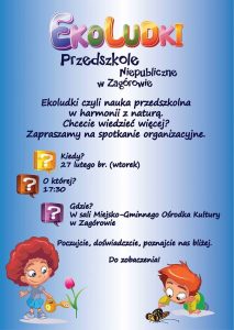 Już w najbliższy wtorek o godzinie 17.30 w sali Miejsko – Gminnego Ośrodka Kultury w Zagórowie odbędzie się spotkanie organizacyjne z kadrą i dyrekcją Przedszkola Prywatnego Ekoludki.