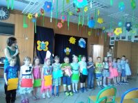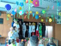 Jednak głównym punktem wieczoru była niespodzianka jaką przygotowali rodzice dla swoich pociech – inscenizacja wiersza Juliana Tuwima „Rzepka”. Inicjatorką, organizatorem i reżyserem tego wydarzenia była wychowawczyni grupy, a dzięki inwencji twórczej rodziców stołówka szkolna stała się baśniową krainą. Nowoczesna interpretacja utworu sprawiła, że widownia z zapartym tchem oglądała zmagania bohaterów wyrywających z grządki rzepkę. Kolorowe stroje, wspaniała gra aktorów, a przede wszystkim ciekawie dobrana muzyka sprawiły, że wiersz przeistoczył się w pełną niespodziewanych zwrotów akcji historię. Przedszkolaki z zapartym tchem i z niecierpliwością oglądały przedstawienie i oczekiwały kolejnych postaci, które pojawiały się na scenie. W przedstawieniu można było obejrzeć brawurowe role: Rzepki (p. Płocharska), Dziadka (p. Wojciechowski), Babci (p. Urbaniak), Wnuczka (p. Olek), Mruczka (p. Augustyniak), Kici (p. Olek), Kurki (p. Boczar), Gąski (p. Wojciechowska), Boćka (p. Boczar), Żabki (p. Szykuła), Kawka (Paulina Olek) oraz Narratorzy (p. Maciejewska i p. Dranikowska). Niespodzianka Bardzo się udała