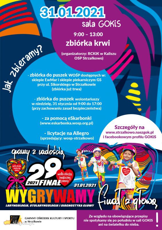 Gminny Ośrodek Kultury i Sportu w Strzałkowie opublikował program niedzielnego finału WOŚP w Strzałkowie. Publikujemy go poniżej.