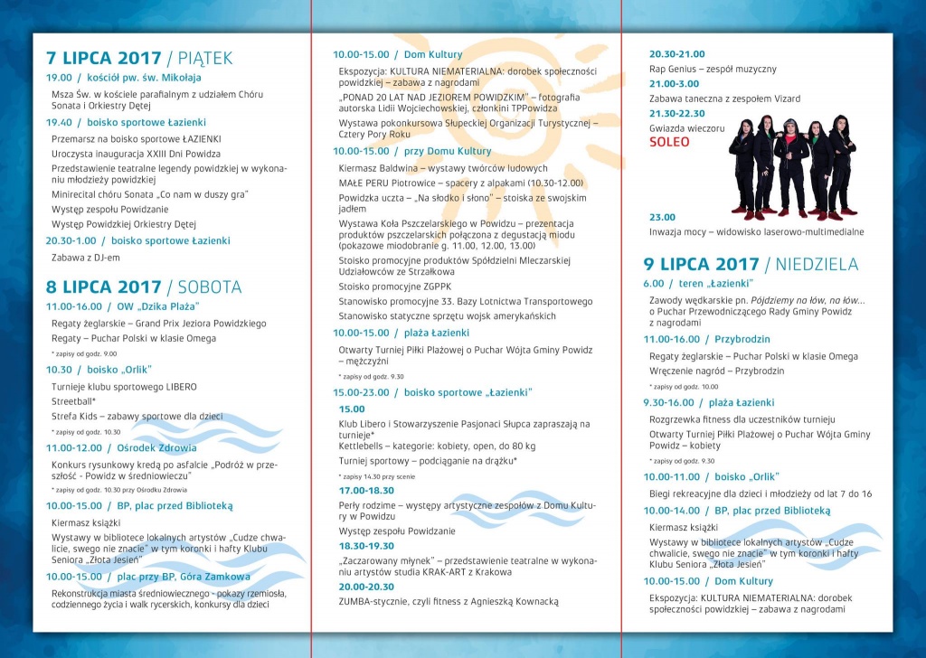 Bogate? Z broszurki wynika że ubogie poza zapychaczami towarzystwa wzajemnej adoracji nie wspomnę nazwy to nic nie ma nawet w piątek żadnej gwiazdy tylko jakiś znajomy dj pewnie z konkursu. No na pewno co niektórzy trochę zarobią na tych dniach Powidza, żenada są zawody wędkarskie o puchar Przewodniczącego Rady Gminy Powidz z NAGRODAMI? Toś to szok nawet są nagrody. Główna Imprezą jak domniemam jest budowa chodnika do Przybrodzina która skończyła się ostatniego czerwca wedle zapewnień wójta włodarza i starosty ale to chyba w kalendarzu juliańskim bo dopiero teraz ją zaczęli na pewno umili imprezowanie!!!