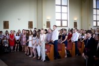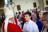 Wszystko fajnie tylko szkoda , że nikt nie wziął pod uwagę i temperatury panującej w kościele i tego , że co chwilę jakieś dziecko które było bierzmowanie musiało wyjść z kościoła zaczerpnąć świeżego powietrza zdecydowanie przy takiej temperaturze ta ceremonia powinna być skrócona do max minimum .
