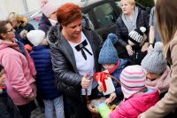 Przedszkolaki z ,,Jarzębinki” wczoraj zaprosiły do MDK swoje kochane babcie i dziadków. Zaproszenie skierowane było także do zaprzyjaźnionego z przedszkolem Klubu Seniora ,, Odrodzenie” na czele z panią prezes Zofia Staszak . Dyrektor przedszkola Iwona Buśkiewicz powitała zebranych w sali kina , złożyła serdeczne życzenia i zaprosiła na Walentynkowy koncert pod hasłem ,, Kochamy Was ‘’. Dzieci z grupy ,, Pszczółki” „ Żabki” ,,Muchomorki” i ,, Jeżyki” zaprezentowały się w specjalnym programie artystycznym, recytowały wiersze, śpiewały piosenki oraz tańczyły . W przygotowanych występach wnuczęta wyraziły swoją miłość i wdzięczność do ukochanych osób. Mali artyści z przejęciem odtwarzali swoje role, a czcigodni goście ze wzruszeniem odbierali czułe słowa, kierowane pod ich adresem . Niejednej babci i dziadkowi zakręciła się łza w oku. Po występach przedszkolaków na scenę zaproszeni zostali goście z Klubu Seniora zaśpiewali oni przygotowaną piosenkę ,, Szła babeczka do laseczka ” i recytowali bardzo humorystyczne wiersze o babci i dziadku. Dzieci obdarowały gości laurkami i upominkami a w zamian otrzymały słodkości i prezenty. Po uroczystości dla wszystkich były słodkości , a wnuczęta wręczyły swoim ukochanym babciom i dziadkom przygotowane samodzielnie laurki z pięknymi życzeniami. Pełne radości i uśmiechu twarze zaproszonych gości pokazały nam, jak ważne są takie spotkania i wspólnie spędzony czas razem z wnukami. To był naprawdę wyjątkowy dzień , pełen radości i dumy. Mamy nadzieję, że wspólnie spędzone chwile na długo pozostaną w pamięci zarówno dzieci jak i Babć oraz Dziadków. Kochanym Babciom i drogim Dziadkom jeszcze raz życzymy samych pięknych chwil w życiu i tego, aby zawsze byli dumni ze swych wnuków jak w tym dniu.