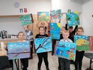 Ostatni dzień ferii zimowych okazał się bardzo pechowy dla uczestników, pogoda pokrzyżowała plany. Miał być wyjazd na lodowisko a były warsztaty malarstwa artystycznego. Inspiracją naszych młodych artystów było wczorajsze spotkanie z przyrodą w NPK. Jak wyszły im obrazy oceńcie sami.