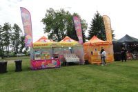Atrakcje towarzyszące również przyciągały zainteresowanie: stoiska Kół Gospodyń Wiejskich kusiły domowymi przysmakami, dzieci mogły korzystać z dmuchańców i animacji, a obecność stoisk prewencyjnych zapewniała dodatkowe poczucie bezpieczeństwa i edukacji.