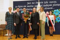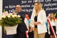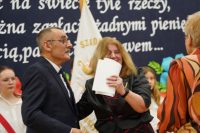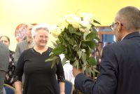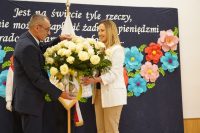 Panie Dyrektorze! Romek! Czas zasłużonej emerytury to taka nowa droga, gdzie każdy dzień staje się niedzielą. Kiedy chcesz to wstaniesz, kiedy chcesz to zrobisz. Na nowej drodze życzę Ci dużo zdrowia, uśmiechu, radości, miłego odpoczynku, wszystkiego co najlepsze. Mam także przyjemność podziękować Ci za tyle lat naszej wspólnej współpracy na rzecz pomocy dzieciom, rodzicom, społeczności szkolnej. Bardzo dziękuję!