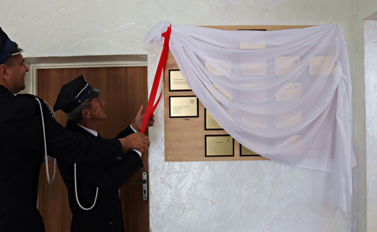 Następnie odbyło się uroczyste odsłonięcie tablicy pamiątkowej poświęconej wszystkim członkom zarządów jednostki w Kamieniu, druhom założycielom i budowniczym strażnicy. Złożono także podziękowania i wręczono pamiątkowe statuetki druhom prezesom przybyłych OSP i przedstawicielom instytucji, z którymi współpracuje jednostka w Kamieniu. Na koniec głos zabrali zaproszeni goście. Po części oficjalnej na strażaków, zaproszonych gości i mieszkańców czekał poczęstunek.