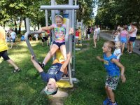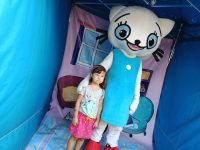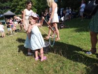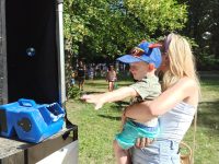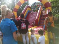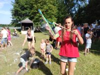 Ludzi przyszło kilkuset, może 300, może 500 , dzieci na pewno ponad 150 (czyli jest zainteresowanie i zapotrzebowanie na takie wydarzenia). Kubłów z wodą do baniek naliczyłem 6-7, w każdym jeden albo dwa zestawy kijków, więc przy takiej ilości ludzi nie było żadnej szansy spróbować. Dwa małe zamki dmuchane, 10 zł za 5 min(!), czyli szczyt zdzierstwa został osiągnięty. Wpuszczali po piątce dzieci, a ponieważ nie było co robić to i tak ustawiła się do nich kolejka na jakieś 45 minut stania – teoretycznie, bo żadne dziecko tego nie wytrzyma. Brak jakichkolwiek stoisk z czymkolwiek. Kicia Kocia jedna, na taką ilość dzieci, i bez pojęcia co robić. I jeszcze wyścigi w workach. Worki dla dzieci, były, uwaga, dwa(!).