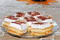 Na blaszce układamy herbatniki, po czym wykładamy na nie masę krówkową. Następnie znów warstwę herbatników. Przygotować budyń zgodnie z przepisem na opakowaniu. Pozostawić do ostygnięcia. Miękką margarynę utrzeć mikserem na puszystą masę, dodając masę eklerkową. wyłożyć na herbatniki.