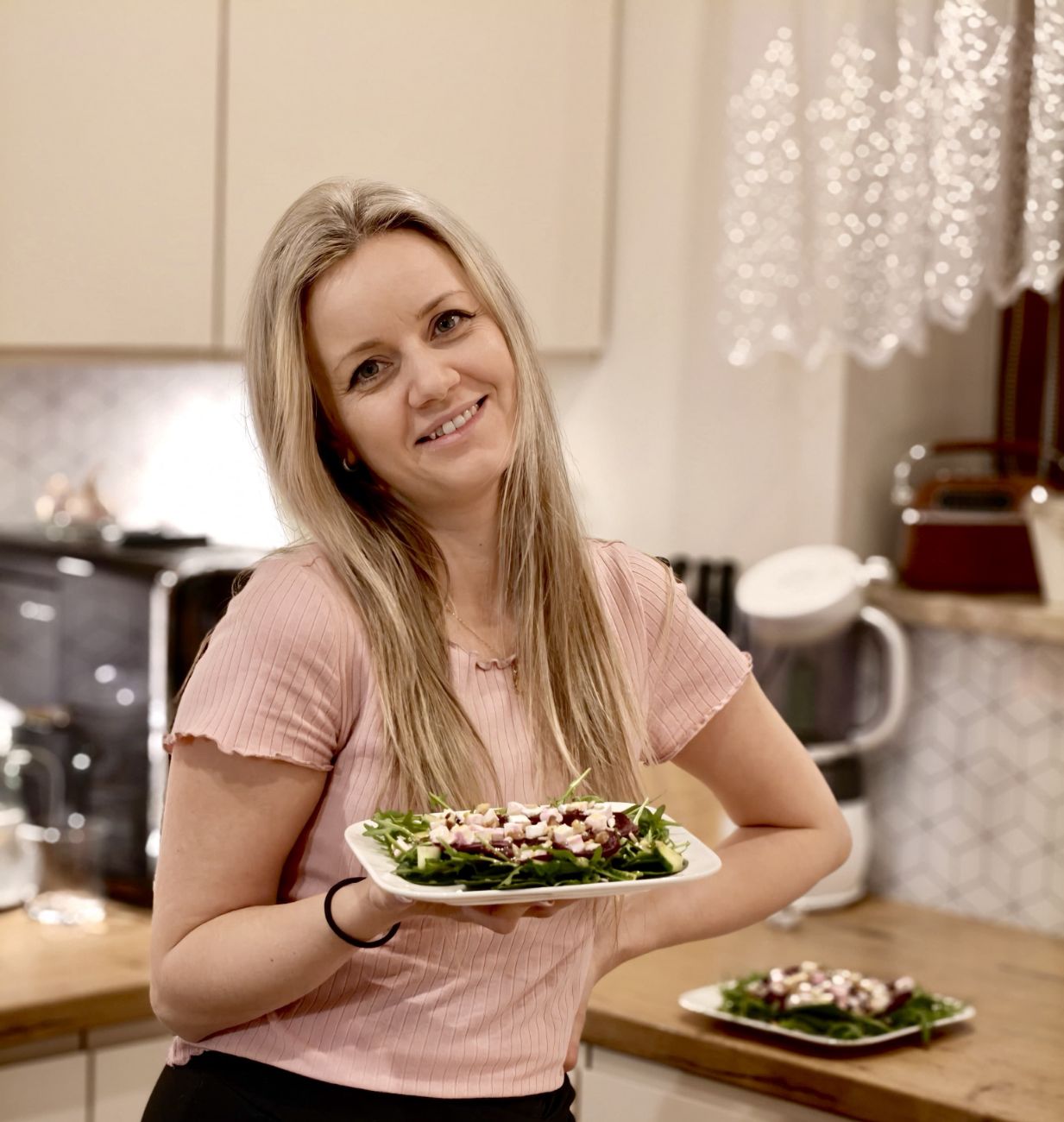 – Prowadzę zdrową kuchnię. Jest w niej dużo warzyw, ziół, dobrej jakości mięso, wiejskie jaja. Mogę dodać, że to jest tradycyjna kuchnia – nasza polska. Często króluje u mnie obiad składający się z dwóch dań. Bardzo lubimy rozgrzewające zupy min. krupnik, kapuśniak czy ogórkową. Domowe gołąbki, gulasz z kasza gryczaną czy wątróbka z cebulką to zdecydowanie nasze smaki – tłumaczy.