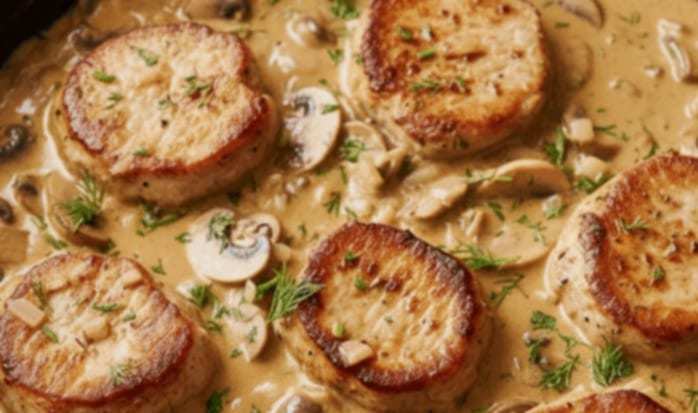 Polędwiczka w sosie śmietanowo – pieczarkowym