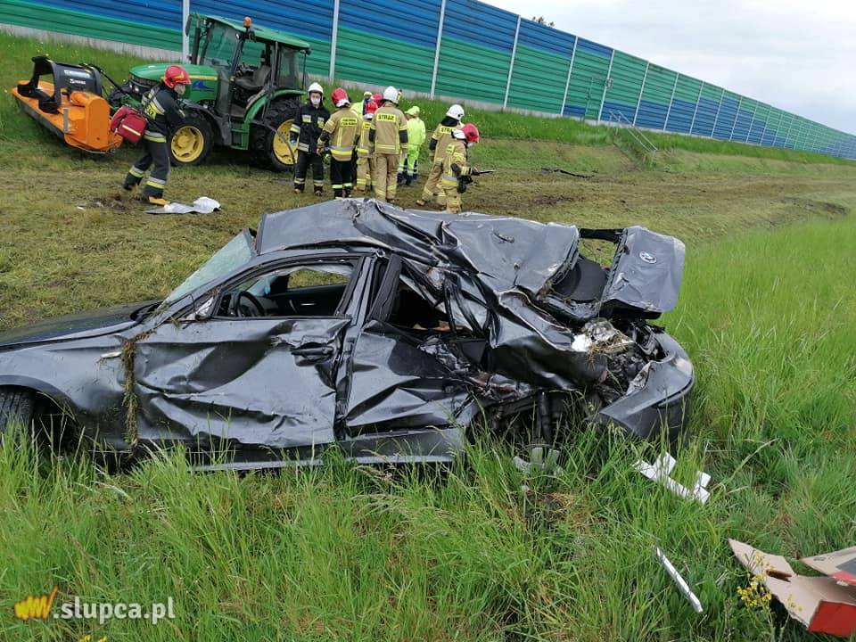 Jadący BMW 21-letni mieszkaniec powiatu słupeckiego wypadł z autostrady, po czym uderzył w znajdujący się na poboczu ciągnik.