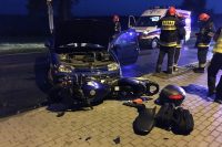 25 sierpnia około godz. 20.00 w Koszutach doszło do zderzenia vw golfa z motocyklem. – Jak wynika ze wstępnych ustaleń policjantów pracujących na miejscu zdarzenia kierujący samochodem osobowym mężczyzna, wykonując manewr skrętu w lewo, najprawdopodobniej nie ustąpił pierwszeństwa przejazdu jadącemu z przeciwnego kierunku jazdy motocyklowi i doprowadził do zderzenia pojazdów – relacjonuje Marlena Kukawa ze słupeckiej policji. Obrażeń w tym zdarzeniu doznali podróżujący jednośladem, którzy zostali przewiezieni do szpitala celem udzielenia pomocy. Kierowcy samochodu zatrzymano prawo jazdy.