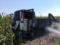 Przed godz. 13.00 zapalił się samochód z naczepą, który pracował przy żniwach. Kierowca wjechał nim w pole kukurydzy, aby ogień nie przedostał się na zboże. Po chwili na miejsce dojechali strażacy z Woli Koszuckiej, Lądku i Wilcznej. Sytuację udało się szybko opanować. W wyniku pożaru nikt nie ucierpiał.