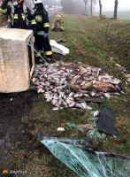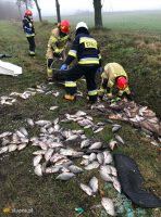 Dziś przed godz. 11.00 na drodze K92 w Kowalewie Góry dachował samochód. – Pomimo bardzo groźnie wyglądającego wypadku nic nikomu się nie stało. Samochód przewoził pojemnik z żywymi rybami, stąd akcja strażaków żeby choć część ryb udało się uratować i przełożyć do zbiornika ponownie napełnionego wodą – relacjonuje Marcin Nachowiak, rzecznik słupeckiej komendy PSP.