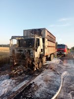 W sobotę, 8 lipca przed godz. 5 strażacy dostali zgłoszenie o pożarze samochodu ciężarowego na drodze wojewódzkiej w Szyszłowie, w okolicy skrzyżowania w stronę Ostrowitego. Najpierw zapaliło się koło, po chwili pożar się rozprzestrzenił. – Po przybyciu na miejsce zastępów straży pożarnej zastano rozwinięty już pożar kabiny. Kierowca samochodu ciężarowego znajdował się poza nim próbując gasić pożar. Strażacy podając jeden prąd piany ciężkiej ugasili pożar kabiny, jednocześnie podali prąd wody w obronie pobliskiego zboża – relacjonuje Mariusz Pawela, rzecznik słupeckiej komendy PSP. W akcji uczestniczyły zastępy ze Słupcy, Szyszłowa, Ostrowitego i Kąpiela.