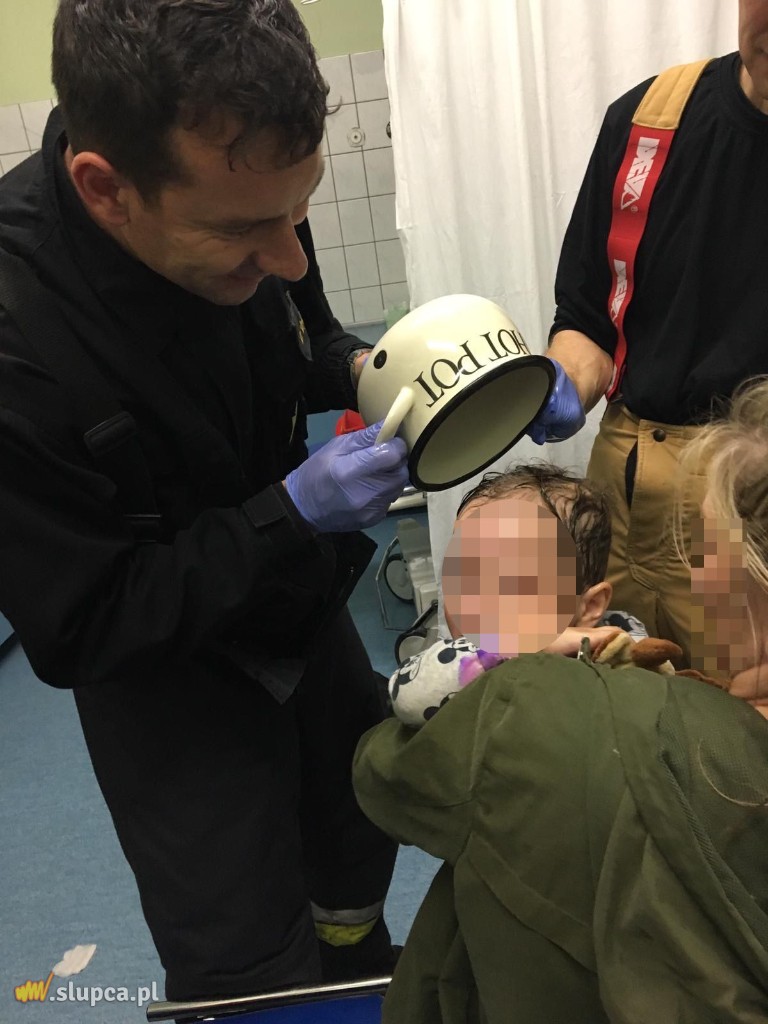 Wczoraj wieczorem informowaliśmy o nietypowej interwencji strażaków na izbie przyjęć słupeckiego szpitala. Dziś na stronie komendy pojawił się komunikat na tan temat. – Personel medyczny słupeckiego szpitala zadzwonił z prośbą o pomoc w zdjęciu garnka z głowy 2-letniego dziecka, które nałożyło go sobie na głowę i nie można było go ściągnąć. Dziecko przywieźli na izbę przyjęć wystraszeni rodzice, którzy nie mogli sami sobie poradzić z problemem. Słupeccy strażacy już w momencie otrzymania zgłoszenia wpadli na pomysł, że zabiorą ze sobą zwyczajny olej spożywczy, który może być przydatny. I nie mylili się. Smarując delikatnie miejsca na głowie udało się ściągnąć garnek z głowy dziecka bez użycia specjalistycznego sprzętu, który nie dość że mógłby spowodować duże zagrożenie dla dziecka, to również niewyobrażalny stres dla niego. Udało się zdjąć garnek z głowy już dość mocno wystraszonego dziecka, które pewnie samo nie było do końca świadome co się stało – informuje Marcin Nachowiak, rzecznik słupeckiej komendy.