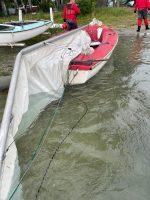 Dziś ok. godz. 16.30 służby ratunkowe interweniowały na Jeziorze Powidzkim. Ze zgłoszenia wynikało, że na wysokości ośrodka Horn w Kosewie wywróciła się żaglówka, z której wypadły dwie osoby. Na miejsce zadysponowano dwa zastępy JRG Słupca, grupę wodno-nurkową oraz strażaków z OSP Powidz i Kosewo. Ci ostatni jako pierwsi podpłynęli do wywróconej łodzi i podjęli z wody dwie wychłodzone osoby. – W momencie naszego dopłynięcia osoby znajdowały się już daleko od żaglówki. Dryfowały na wodzie już skrajnie wycieńczone, osoby te nie miały na sobie kamizelek ratunkowych i konieczny był skok do wody naszego ratownika, który przejął te osoby i utrzymał je na powierzchni wody. Po podjęciu osób na naszego riba i dopłynięcie do brzegu udzieliliśmy pomocy medycznej jednej osobie (dziewczyna 21 lat), której podaliśmy tlen i zabezpieczyliśmy termicznie przed wychłodzeniem organizmu – relacjonują ratownicy z OSP Kosewo.
