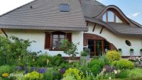 Przycupnięty na skrzynce na listy kocur i wystający zza zdobionego metaloplastyką ogrodzenia dach o klasycznej, wysokiej formie, pokryty karpiówką, który zwieńczony jest dodatkowo urokliwym kominem, przywodzi na myśl ogród rodem z baśni braci Grimm. Za bramą wita nas właścicielka tego tajemniczo zapowiadającego się ogrodu, Monika, której pasją jest projektowanie zieleni i przestrzeni wokół domu. Inspiracje czerpie z różnych źródeł adaptując je na własne potrzeby. Czasem są to gotowe aranżacje widziane np. na targach ogrodniczych, ogrodach pokazowych, innym razem rozwiązania podpatrzone w programach telewizyjnych lub w internecie. Nie ma to znaczenia, gdyż pani Monika nie kopiuje, ale tworzy nową jakość, dzieląc lub łącząc pomysły, według własnej koncepcji i wyczucia przestrzeni, a tego sądząc po rozkładzie i sposobie urządzenia ogrodu, nie można jej odmówić, bo ten po prostu zachwyca. W dzisiejszej części pokażemy ogród frontowy, czyli część znajdującą się przy domu. W kolejnej postaramy się przybliżyć pozostałe strefy wydzielone z tej 35-arowej przestrzeni.